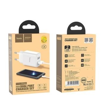 Specyfikacja produktu: Ładowarka sieciowa Hoco Victoria C62A 2xUSB 2,1A z kablem Micro USB Biały