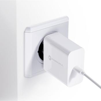 Ładowarka sieciowa Forcell z funkcją szybkiego ładowania. Pozwala na błyskawiczne uzupełnianie energii rozładowanych urządzeń.