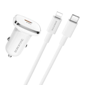Ładowarka samochodowa USB Typ C - PD Borofone BZ12B Lasting Power QC 3.0 18W 3A + Kabel USB Typ C na Lightning Biały