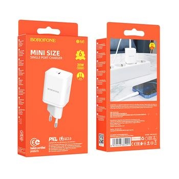 Ładowarka sieciowa USB Typ C Borofone BN6 Field QC 3.0 PD 20W Biały