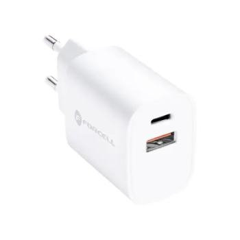 Ładowarka Sieciowa USB + USB Typ C Forcell 3A 30W z ładowaniem PD i QC 4.0 Biały