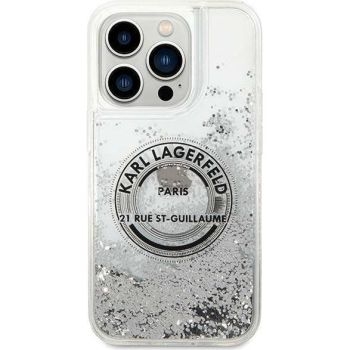 Markowy Hard Case Karl Lagerfeld Liquid Glitter RSG Apple iPhone 14 Pro Max Srebrny