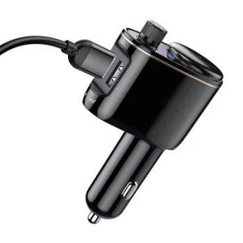 Wielofunkcyjny transmiter, ładowarka samochodowa i zestaw głośnomówiący w jednym. Posiada 2 porty USB-A. Pozwala na jednoczesne ładowanie dwóch urządzeń oraz zapewnia możliwość odtwarzania muzyki z telefonu, pendrive’a lub karty pamięci.