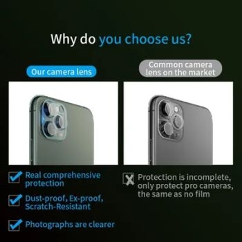 Szkło pokrywa całą powierzchnię aparatu, nie tylko soczewki. Wysoka wytrzymałość zapewnia doskonałą ochronę przed zarysowaniami. Klej na całej powierzchni oraz dodatkowy filtr zapobiegający dostawaniu się kurzu chronią aparat przed zabrudzeniem.