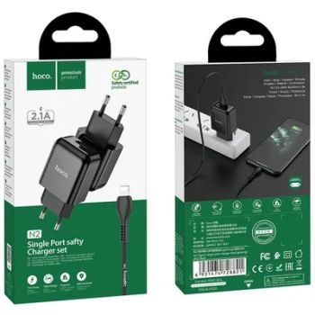 Ładowarka sieciowa USB 2.1A Hoco N2 Vigour + Kabel iPhone Lightning Czarny