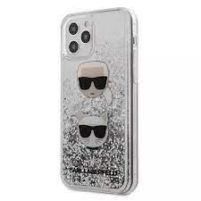 Markowy Hard Case Karl Lagerfeld Liquid Glitter 2 Heads Apple iPhone 12 / 12 Pro Srebrny