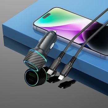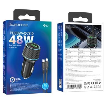Ładowarka samochodowa USB + Typ C Borofone BZ21 Brilliant QC 3.0 PD 48W + Kabel Typ C na Lightning Czarny