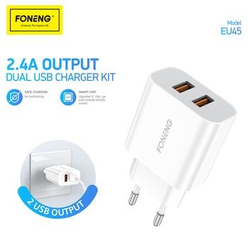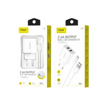 Ładowarka sieciowa 2xUSB Foneng EU45 12W 2,4A 9 + Kabel USB Typ C Biały