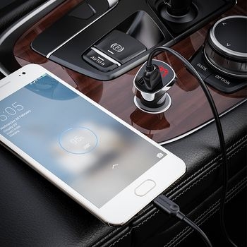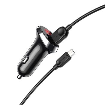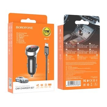 Ładowarka samochodowa 2xUSB Borofone BZ15 Auspicious 2,4A + Kabel Micro USB Czarny