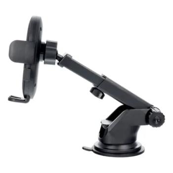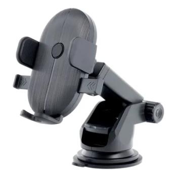 Uniwersalny uchwyt samochodowy montowany do szyby przedniej lub deski rozdzielczej o nowoczesnym designie. Posiada regulowane ramię.