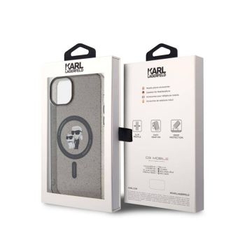 Markowy Hard Case Karl Lagerfeld Karl&Choupette Glitter Apple iPhone 15 Plus Czarny