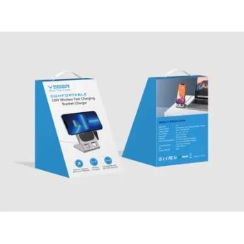 Szybka ładowarka indukcyjna Veger o mocy 15W. Jest kompatybilna ze wszystkimi smartfonami zgodnymi z Qi. Umożliwia na korzystanie z urządzenia w pionie i poziomie.
