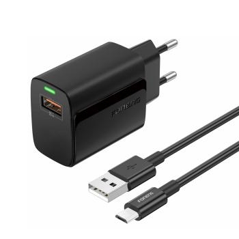 Ładowarka sieciowa USB Foneng EU64 18W + Kabel Micro USB Czarny