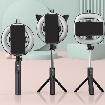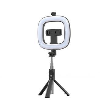 Uchwyt do Selfie z odpinanym pilotem bluetooth, tripodem i lampą pierścieniową P20D Czarny