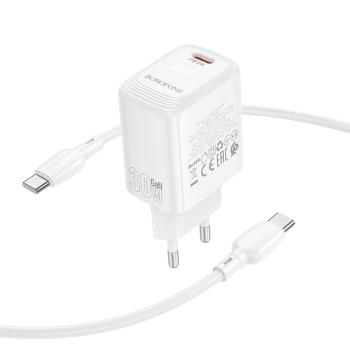 Ładowarka sieciowa Typ C Borofone BN28 Fuente PD 30W + Kabel Typ C na Typ C Biały