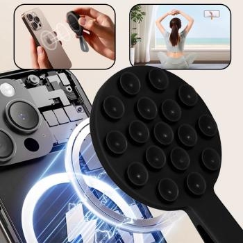 Magnetyczna siła + przyssawki – Mocny magnes współpracujący z MagSafe oraz przyssawki, które trzymają się nawet obudów bez MagSafe.