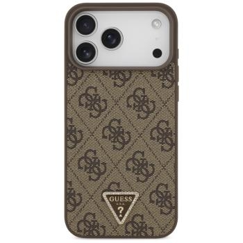 Markowy Hard Case Guess Leather 4G Triangle Strass MagSafe Apple iPhone 17 Pro Max Brązowy