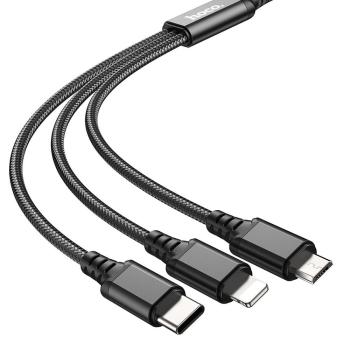 Kabel 3w1 USB A do Lightning / Micro USB / USB C Hoco 2A 1m X76 Czarny